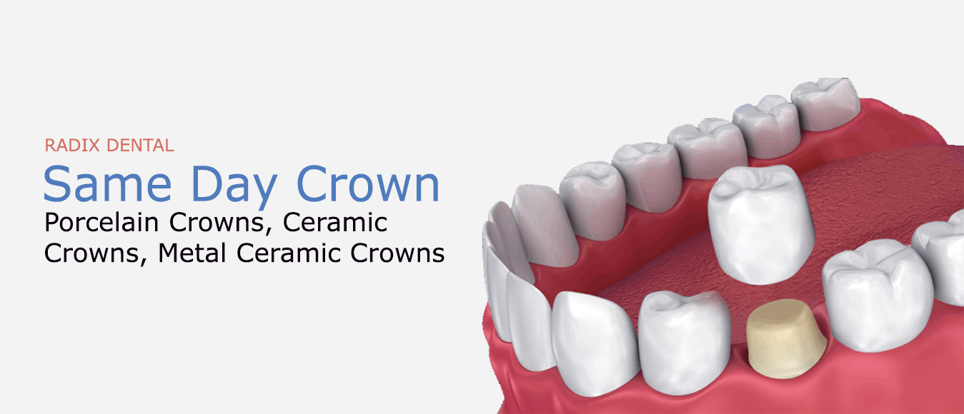 Same Day Crowns in Shaikpet, Hyderabad offer a range of transformative benefits including convenience, time-saving, precision, natural look, durability, improved oral health, boosted confidence, and quick recovery. Dentists provide services for Same Day Crowns in Radix Dental, Shaikpet, Hyderabad, such as Crown Fabrication, Tooth Preparation, Implant Placement, Abutment Attachment, Temporary Crown Placement, Permanent Crown Cementation etc.